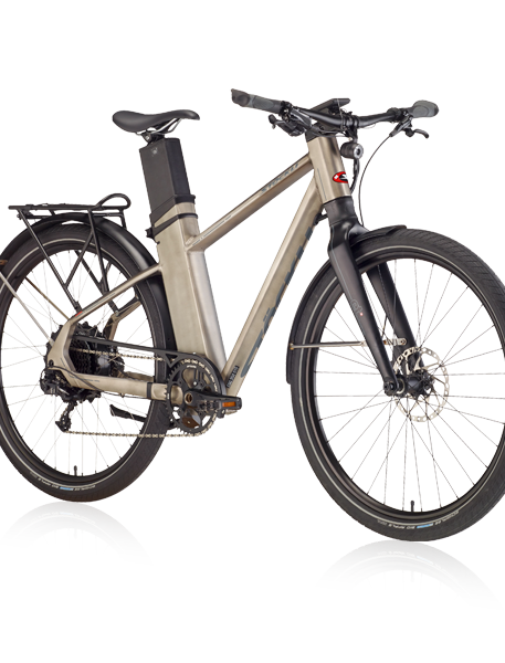 Stöckli durfte das e.t. nicht schneller bauen. Nur ausdauernder. Dank der neuen EasyMount-Technologie kann der Akku jetzt im Handumdrehen entfernt werden, sodass dieser tagsüber bequem im Büro geladen werden kann, während das e.t. in der Garage wartet. Das neue e.t. kommt nicht nur weiter, es soll sich auch länger bequem fahren lassen. Darum hat sich Stöckli ausgeklügeltes Komfortpaket ausgedacht. Zwei grosse Leichtmetallfelgen bügeln mit ihren voluminösen, eigens für Stöckli entwickelten Ballonreifen die letzten Unebenheiten aus. Und dank des direkt in den Gabelschaft integrierten Federsystems werden Schläge und Unebenheiten bestens ausgebügelt.